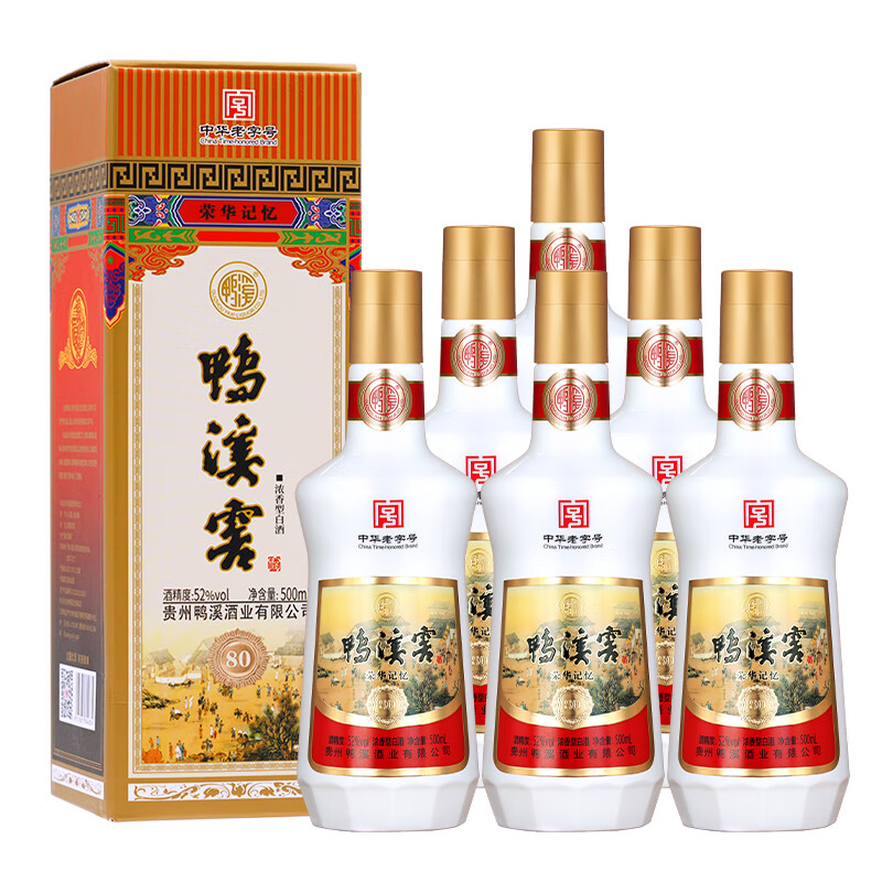 鸭溪窖酒 荣华记忆80版 浓香型白酒 52度500ml*6瓶 整箱装价格:399.00元!