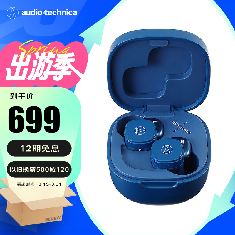铁三角 SQ1TW 真无线蓝牙耳机 入耳式音乐运动防水 兼容苹果华为小米手机 玛瑙蓝价格:699.00元!