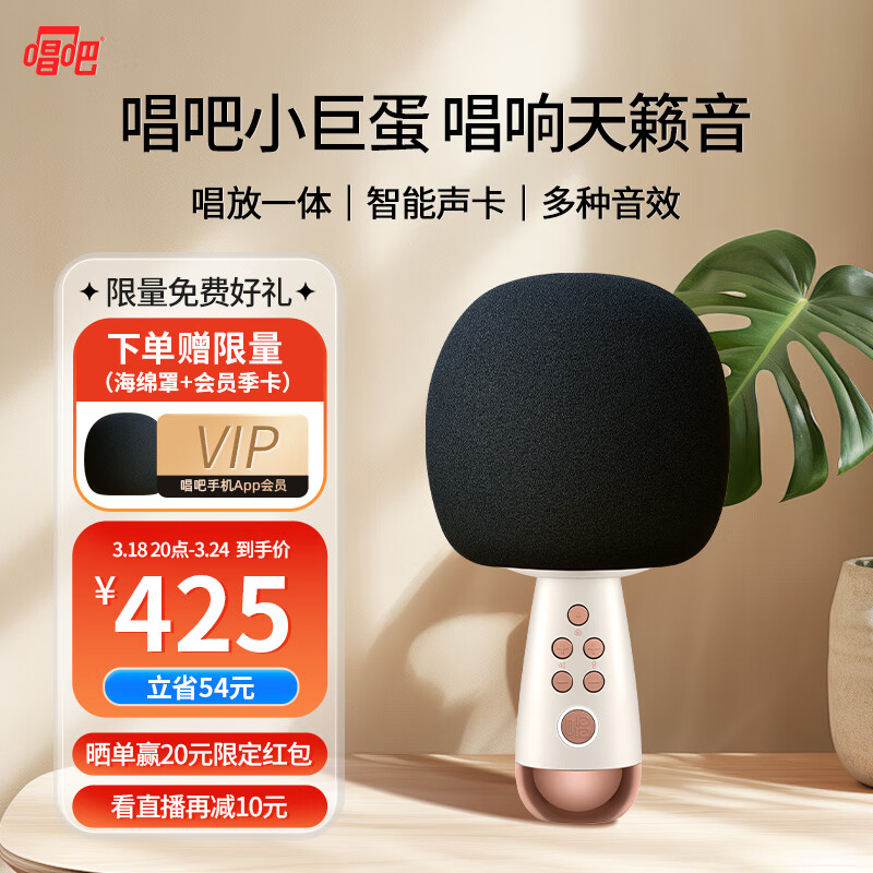 唱吧小巨蛋麦克风G2升级版 手机K歌麦克风音响一体 家庭娱乐KTV无线话筒 高音防啸叫 白金色价格:425.00元!