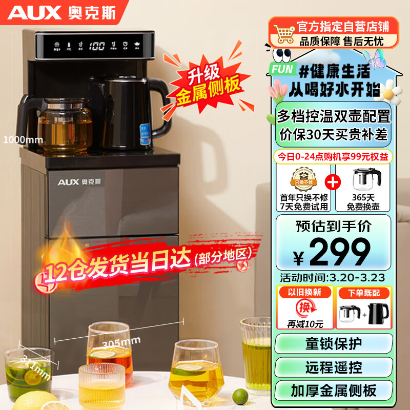 奥克斯(AUX)茶吧机 家用温热长效保温 智能遥控立式款 多功能调温数显大屏下置水桶茶吧机YCB-57价格:299.00元!