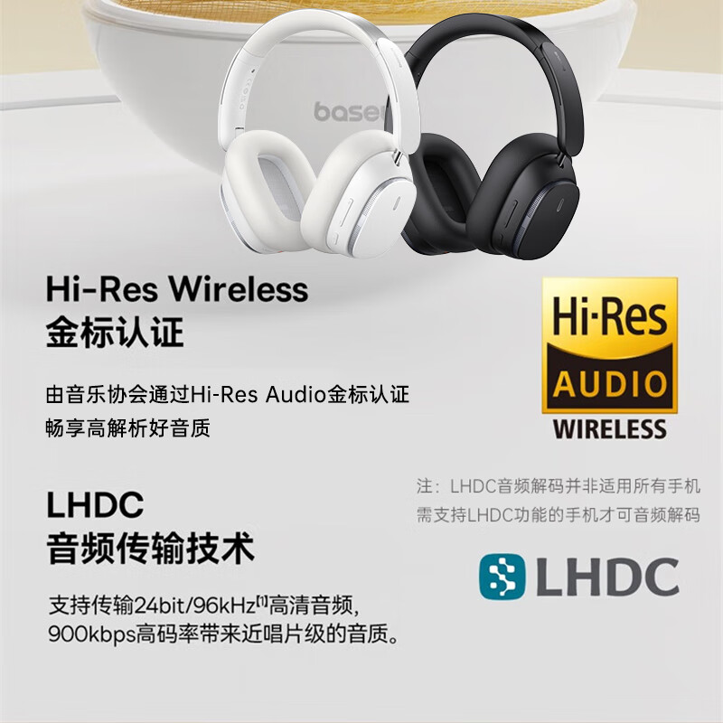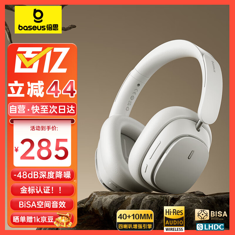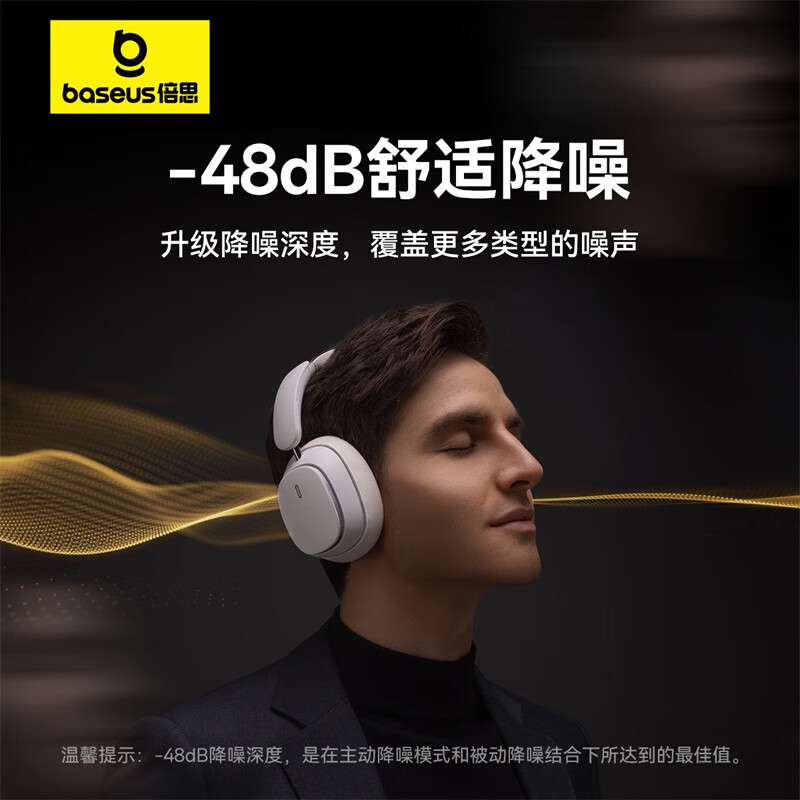 倍思H1pro头戴式蓝牙耳机 金标认证48db主动降噪高音质蓝牙5.3真无线 80小时超长续航 手机电脑适用 白价格:285.00元!