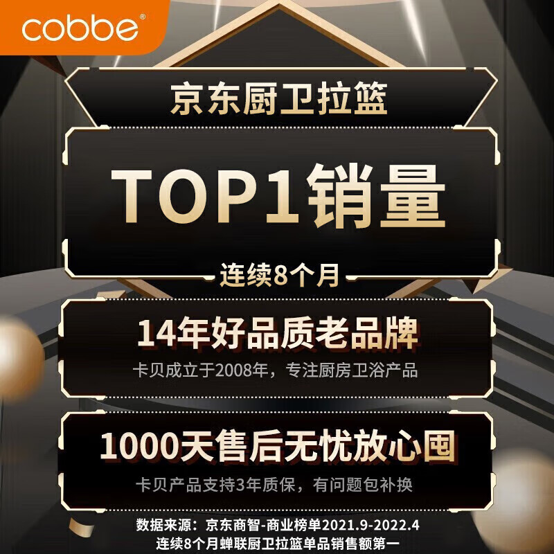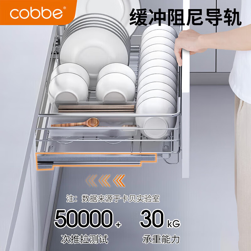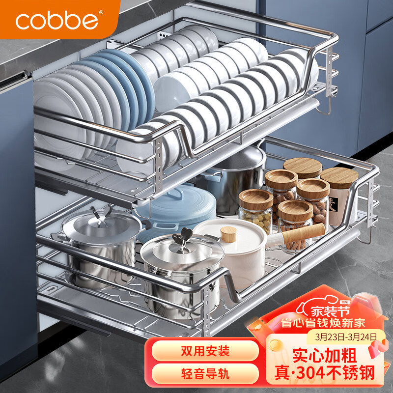 卡贝(cobbe)厨房拉篮橱柜304不锈钢碗架抽屉式双层碗篮置物架调味拉蓝碗碟架价格:428.00元!