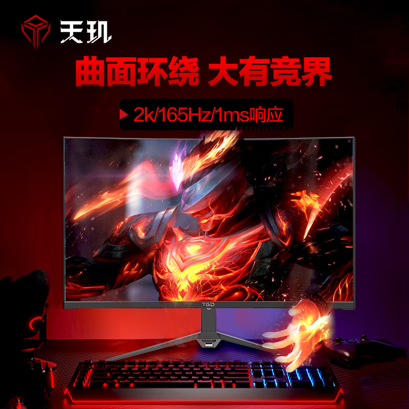 天玑(TGD)27英寸 2K显示器 165Hz 曲面电竞R1500 HDR10 Freesync防撕裂不闪屏低蓝光家用游戏显示器 F2756QK价格:729.00元!