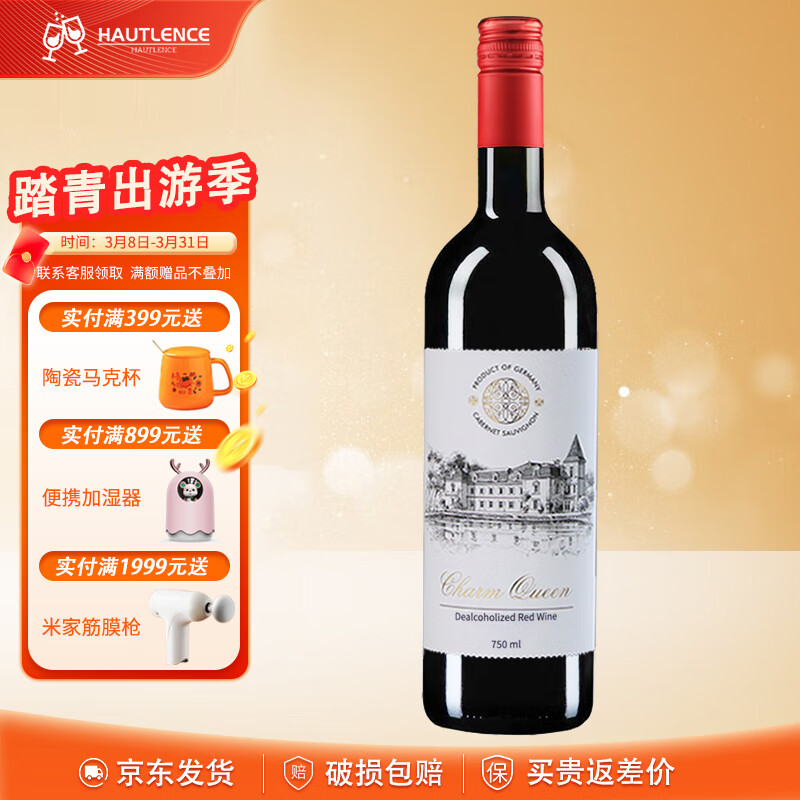 Ardeche无醇葡萄酒 高端婚宴送礼达颜无酒精真脱醇红酒应酬挡酒0度零度 珍藏升级脱醇1*750ml单支价格:109.00元!