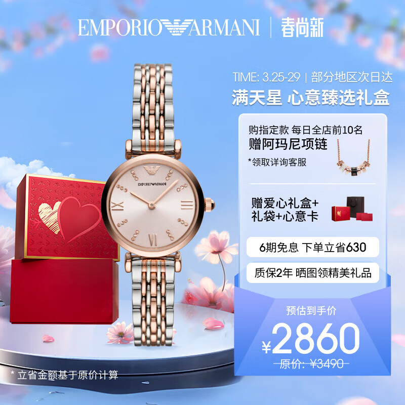 安普里奥·阿玛尼(Emporio Armani)手表女满天星系列钢带石英时尚女士腕表送女友生日礼物 AR11223价格:3060.00元!
