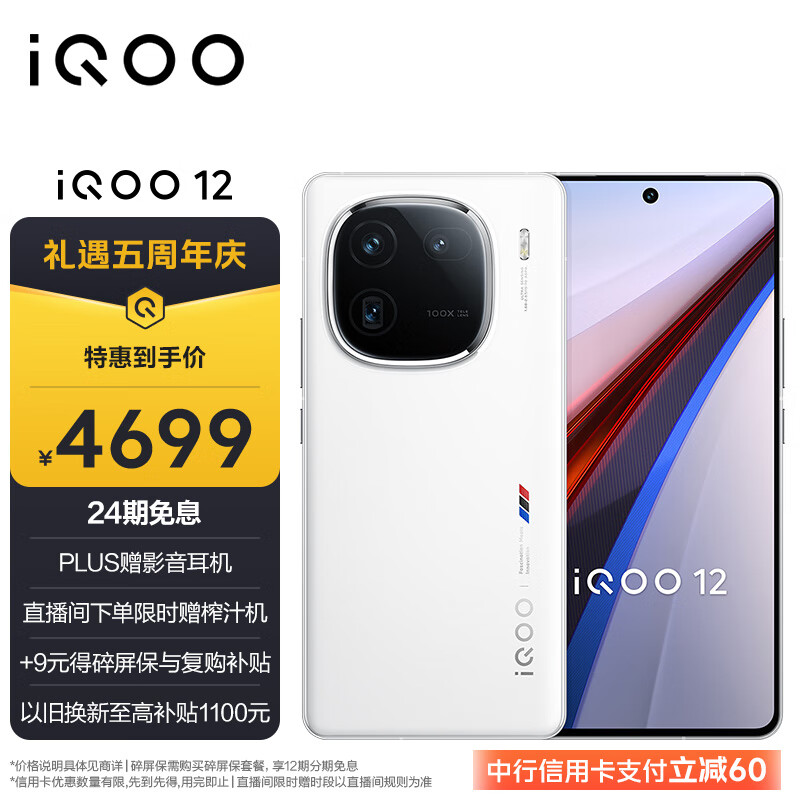 vivo iQOO 12 16GB+1TB传奇版 第三代骁龙 8 自研电竞芯片Q1 大底主摄潜望式长焦 5G手机价格:4699.00元!