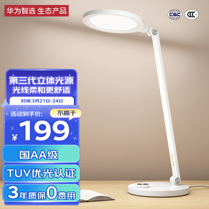 华为智选 达伦读写台灯3 智能护眼台灯国AA级阅读台灯学习护眼灯旋钮调光价格:229.00元!