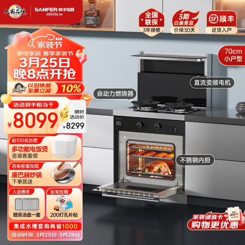 帅丰(SANFER)D8-7B-70 集成灶蒸烤一体集成灶 蒸箱 烤箱 蒸烤箱 集成一体燃气灶 小户型700mm 天然气价格:8799.00元!