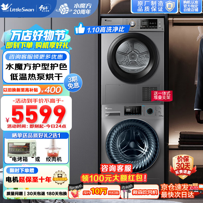 小天鹅(LittleSwan)洗烘套装10kg滚筒洗衣机全自动+热泵烘干机 水魔方 除菌 以旧换新 TGV868+H032WY价格:5699.00元!