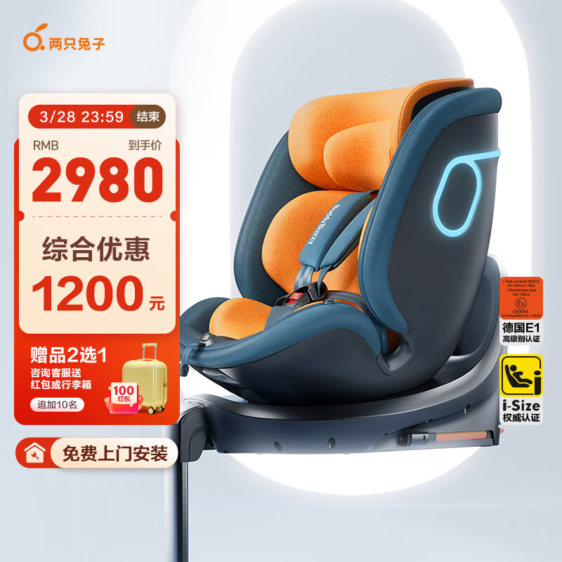 两只兔子求知2智能通风车载婴儿童座椅0-4-12岁宝宝汽车用 星橙价格:2970.00元!