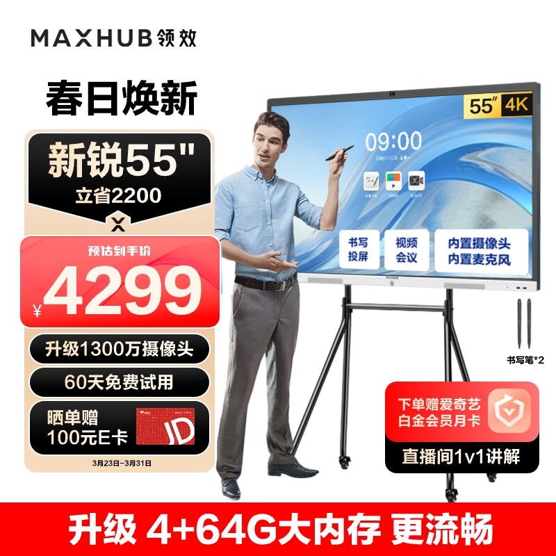 maxhub新锐55英寸会议平板一体机 视频会议触摸电视 投屏电视智慧屏 会议显示大屏 企业采购价格:4299.00元!
