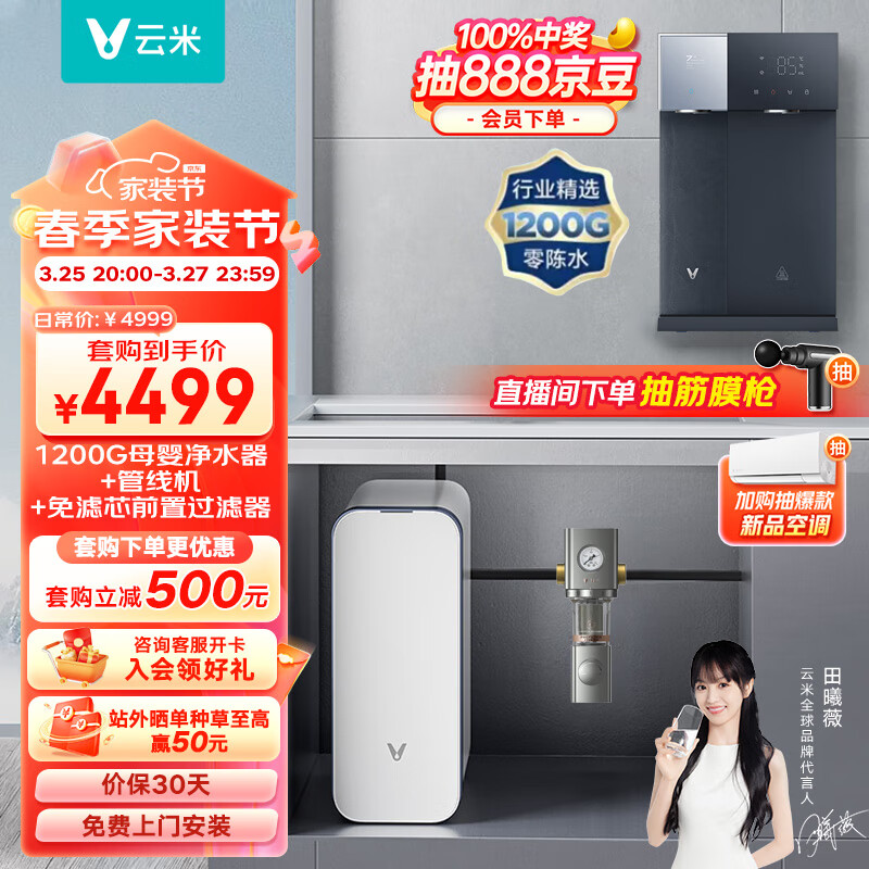 云米(VIOMI)Super Y 1200G全屋净水套装净水器+冷热管线机Master 3+前置过滤器VF4-A三件套家用净水器净水机价格:4999.00元!