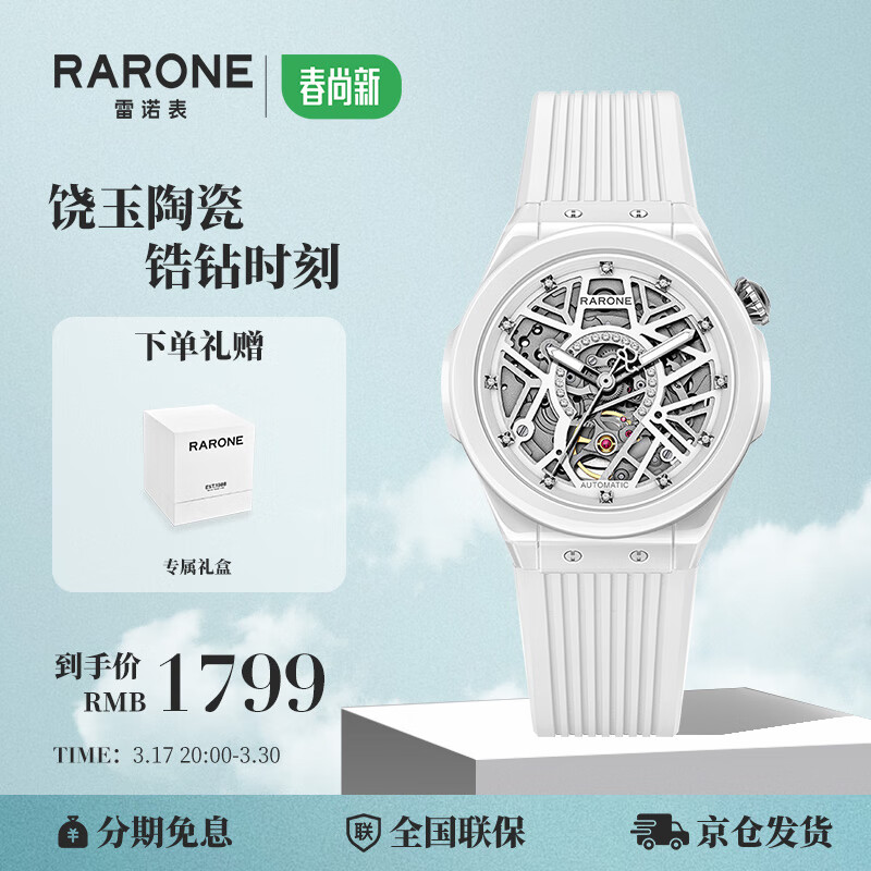 雷诺(RARONE)解构派双子星Q女士机械手表钢带腕表白陶瓷送女友价格:2039.00元!