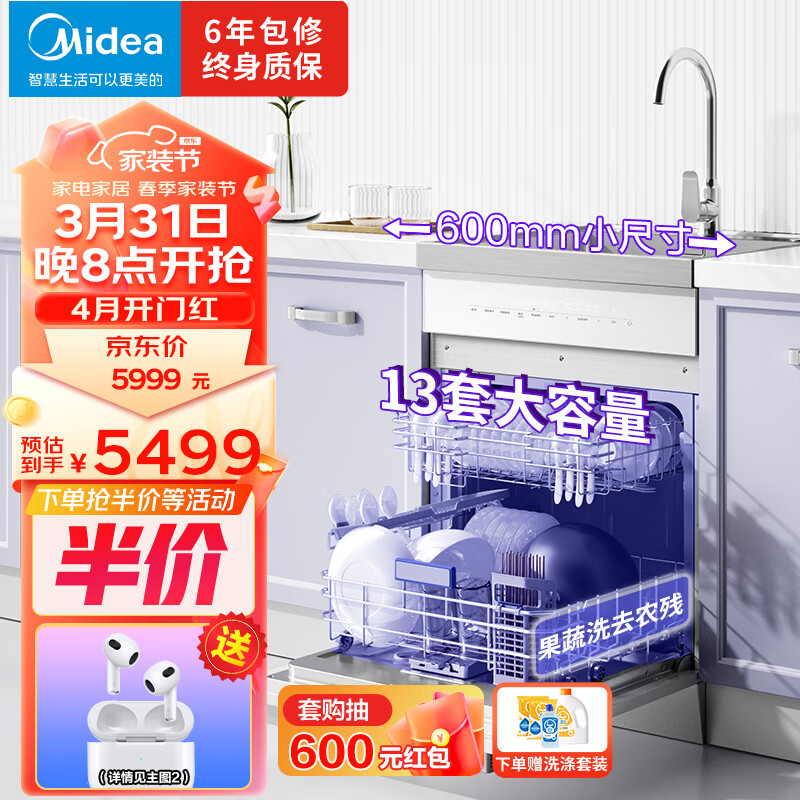 美的(Midea)集成水槽洗碗机TX60 一体式 大单槽 白色水槽洗碗机一体 洗碗机带洗菜盆一体机小尺寸价格:5999.00元!