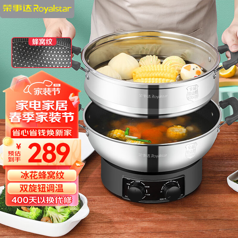 荣事达(Royalstar)电炒锅多功能家用铸铁锅电炒菜炒锅一体式不粘锅山东锅大功率蒸煮锅电热锅电火锅RDG-32CG单笼价格:289.00元!