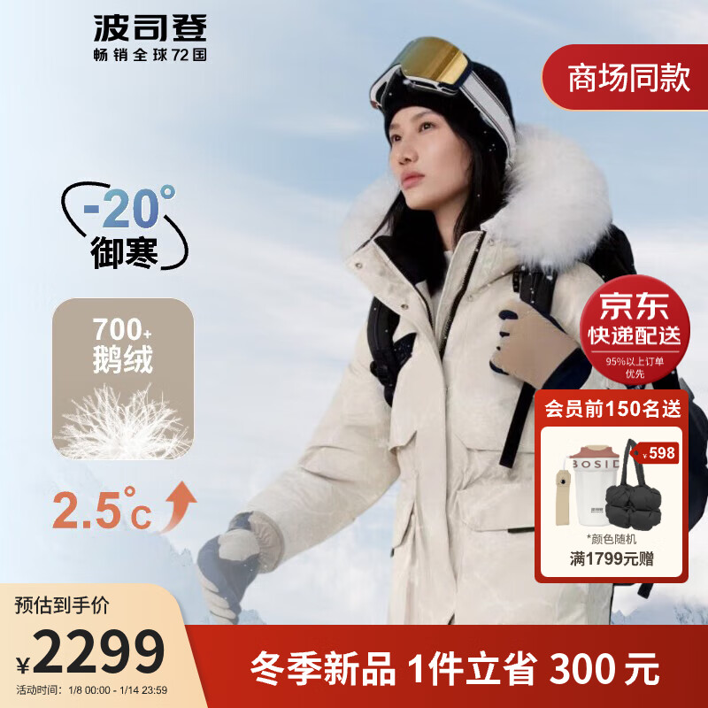 波司登极寒2023冬季鹅绒羽绒服女加厚中长款连帽大毛领外套B30142312WM价格:2599.00元!