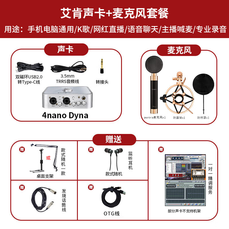 iCON艾肯4nano外置声卡+aurora麦克风话筒套装手机电脑唱歌录音K歌主播直播设备 价格:3228.00元!