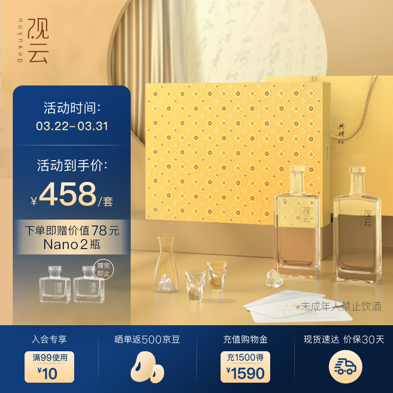 观云共婵娟 浓香型白酒 56度 500ml*2瓶 礼盒装 含酒具【节日送礼】价格:458.00元!