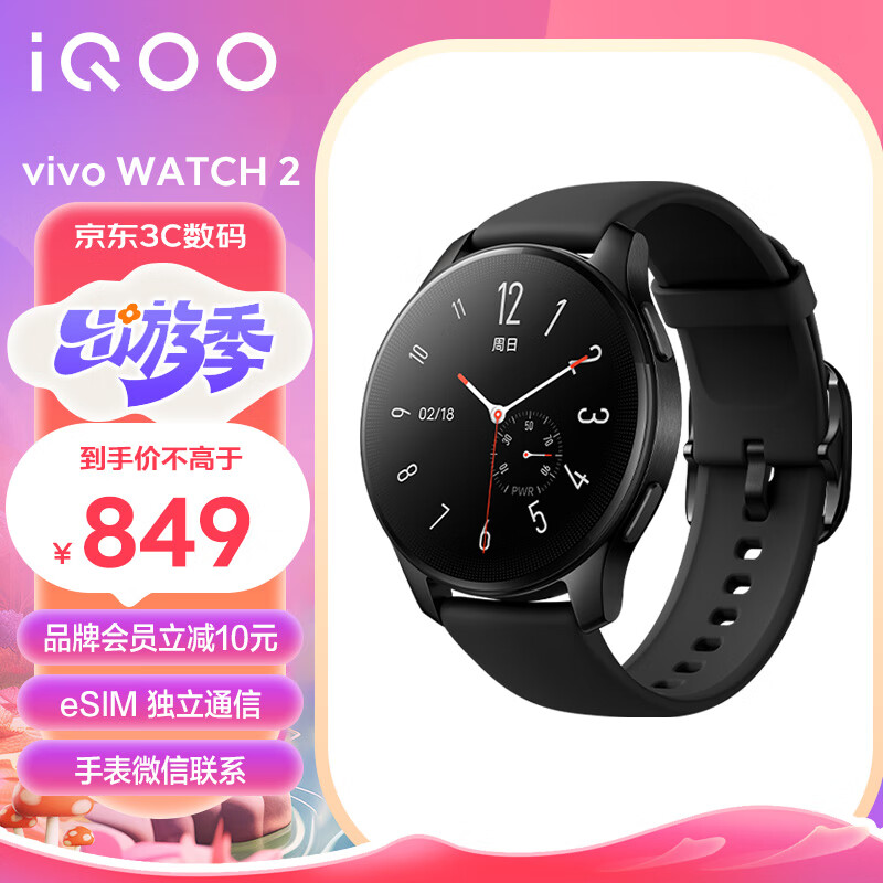 vivo WATCH 2 iQOO原力黑 微信联系 eSIM独立通话接打 长续航智能手表 跑步运动音乐 健康血氧心率睡眠价格:849.00元!