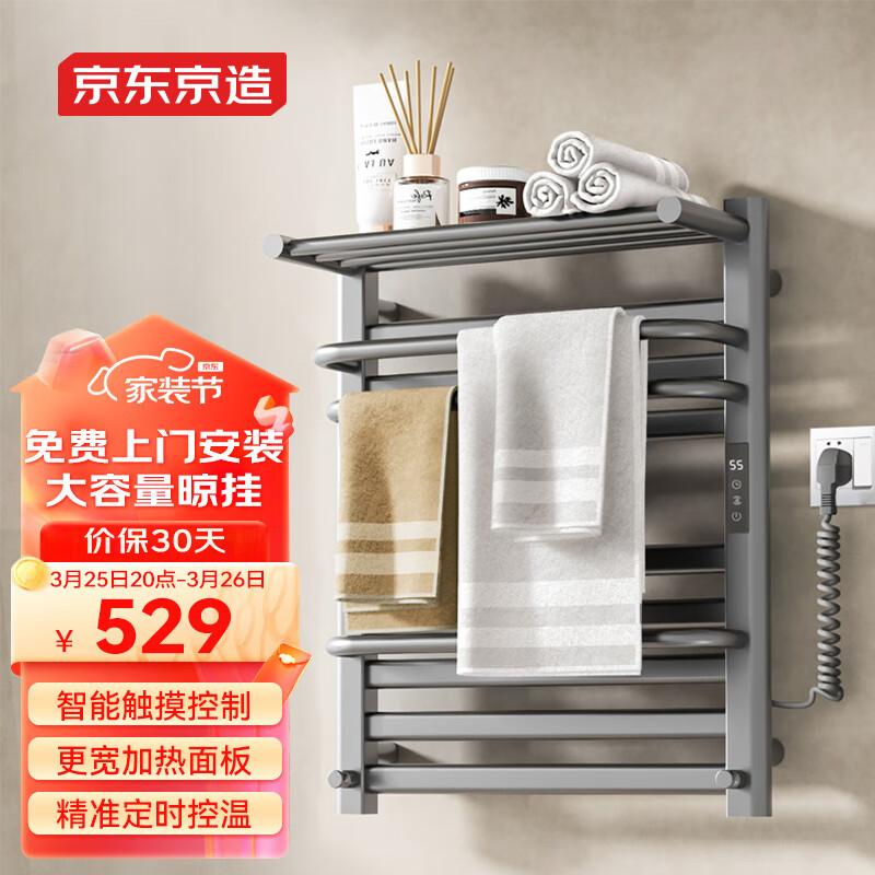 京东京造暖云Pro电热毛巾架智能款 碳纤维加热卫生间浴室烘干包安装太空灰价格:549.00元!