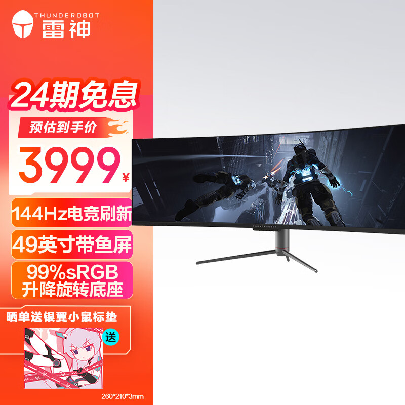 雷神 49英寸 32:9 144Hz HDR 超宽曲面液晶电竞游戏显示器/升降旋转/LF49C144D价格:4499.00元!