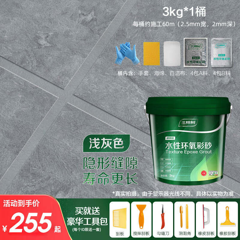三棵树漆(SKSHU)水性环氧彩砂桶装美缝剂耐磨耐水客厅厨卫地砖瓷砖胶 浅灰色价格:255.00元!