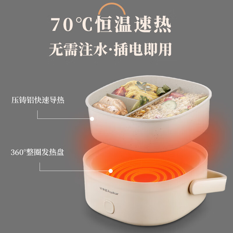 荣事达电热饭盒 加热饭盒 1.2L免注水便捷式低音恒温不粘内胆分隔饭盒RFH208价格:119.00元!