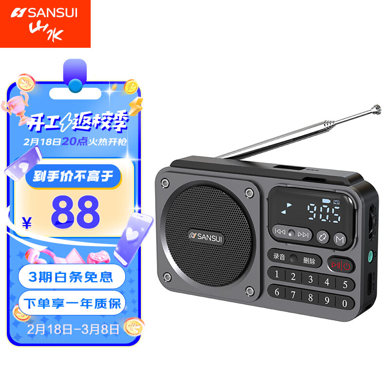 山水(SANSUI)M30便携式插卡U盘随身听听书机户外无线充电蓝牙音箱迷你FM广播半导体送老人收音机 【灰色】价格:88.00元!