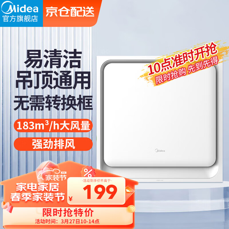 美的(Midea)排气扇换气扇排风扇厨房卫生间集成吊顶铝扣板管道扇价格:199.00元!