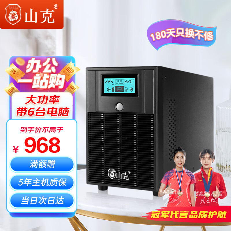 山克 SK3000 ups不间断电源3000VA/1800W家用办公电脑停电稳压应急备用ups电源可带6台电脑价格:968.00元!