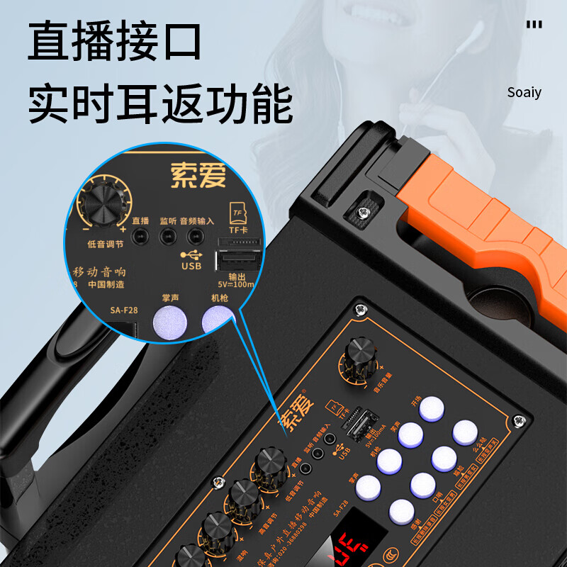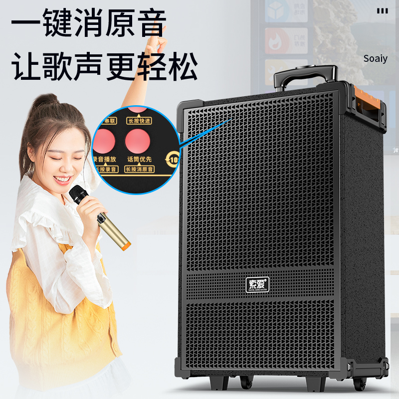 索爱(soaiy)X39广场舞音响12英寸大功率重低音户外K歌网红直播内置声卡移动便携式蓝牙木质拉杆跳舞家用价格:1100.00元!