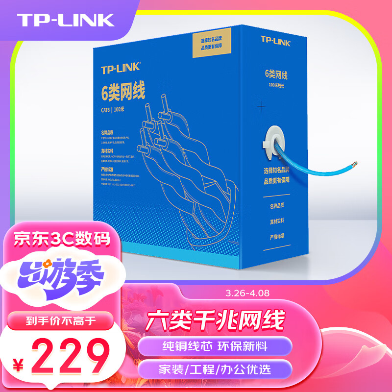 TP-link 六类千兆网线 原装CAT6类非屏蔽高速工程网线 纯铜双绞线 家装网络监控布线100米箱线EC6-100价格:229.00元!
