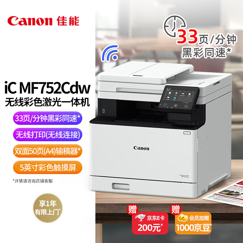 佳能(Canon)iC MF752Cdw A4幅面无线彩色激光多功能一体机(打印/复印/扫描/自动双面/自动输稿器 商用)价格:7999.00元!