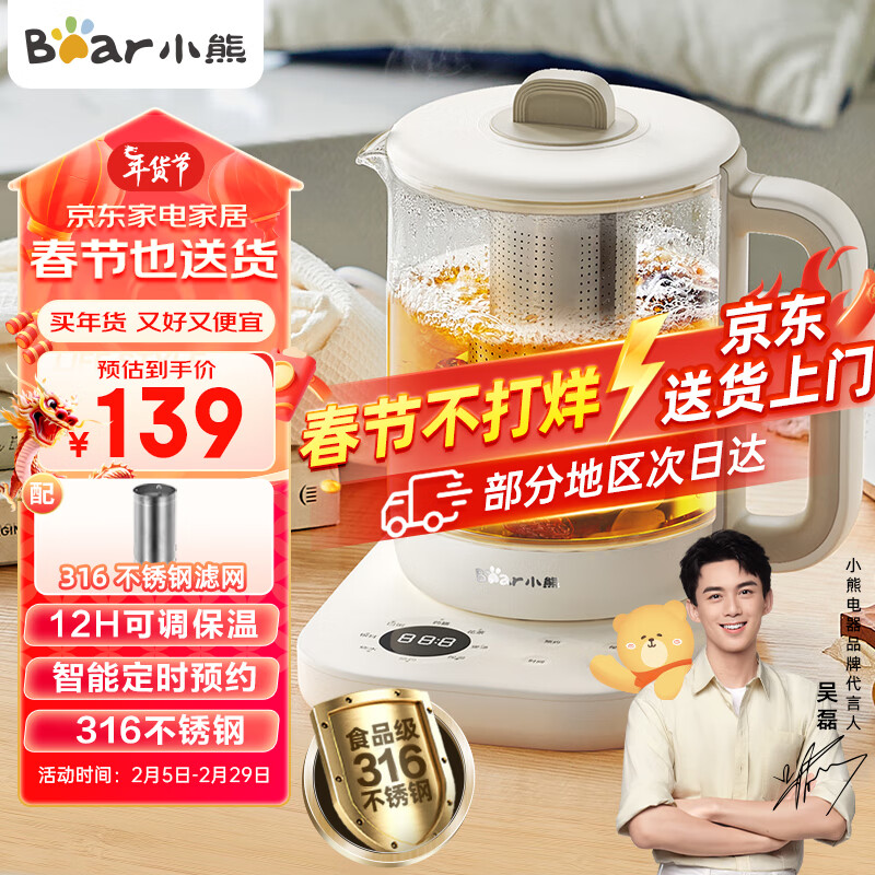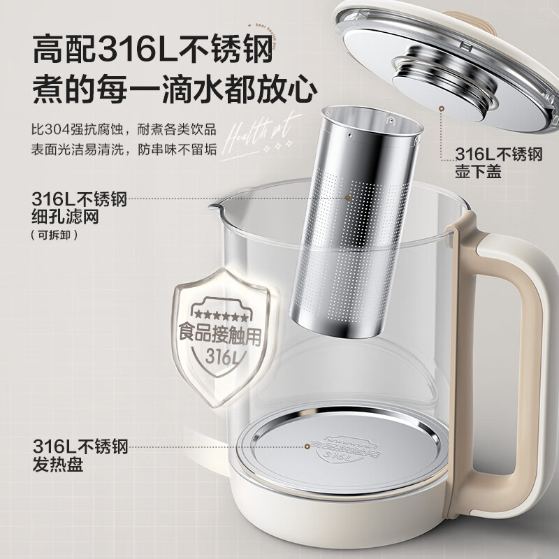 小熊(Bear)养生壶 煮茶壶 办公家用恒温一体炖煮壶1.5L大容量花茶壶煮茶器 316L不锈钢保温烧水壶 YSH-E15J2价格:139.00元!