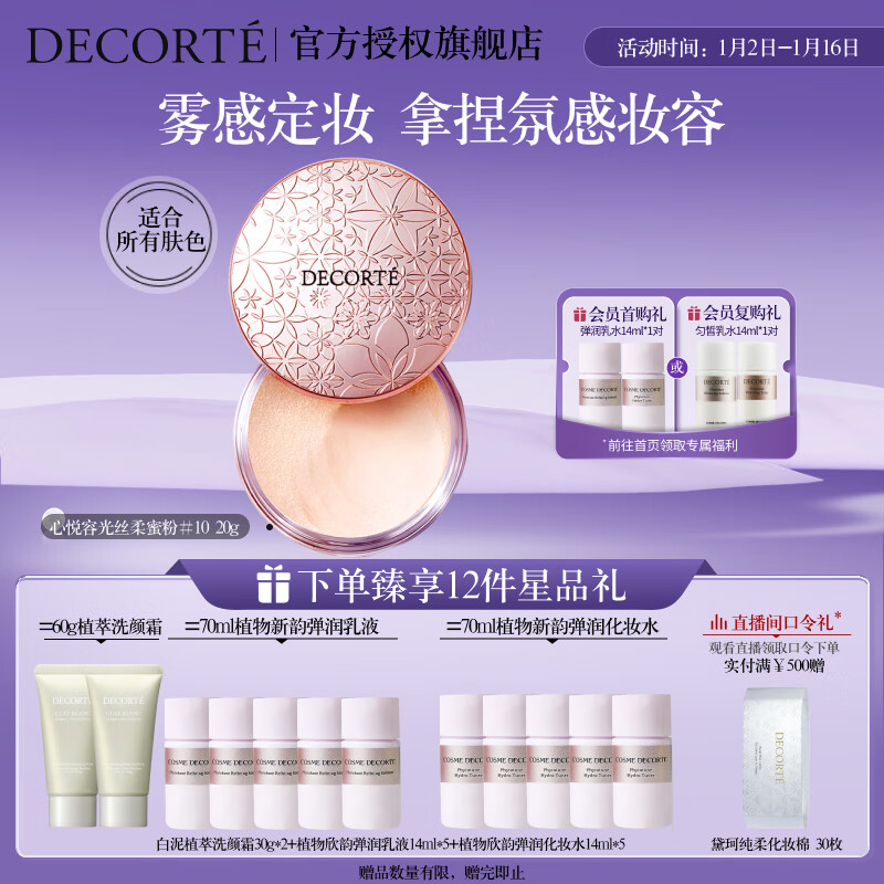 黛珂心悦容光丝柔蜜粉20g10#淡米色(任何肤色)散粉定妆新年礼物女友价格:380.00元!