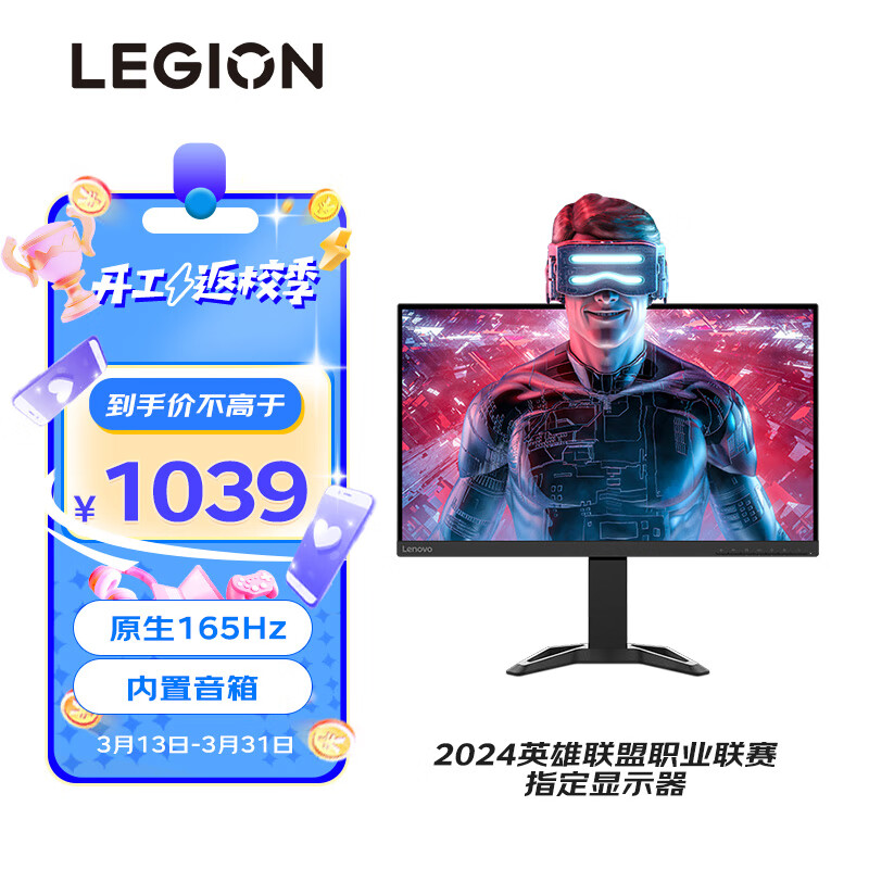 联想(Lenovo)拯救者27英寸 165Hz 原生滤蓝光 FreeSync 1ms响应 HDR 升降俯仰 内置音箱 电竞显示器G27-30价格:1039.00元!