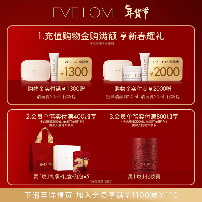 EVE LOM伊芙珑肖战推荐经典洁颜霜卸妆膏200ml 保湿洁面易乳化 生日礼物价格:1280.00元!