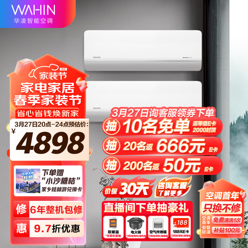 华凌空调新一级 2匹大出风口变频挂机KFR-50GW/N8HL1 +新一级1.5匹变频挂机KFR-35GW/N8HL1Pro价格:5078.00元!