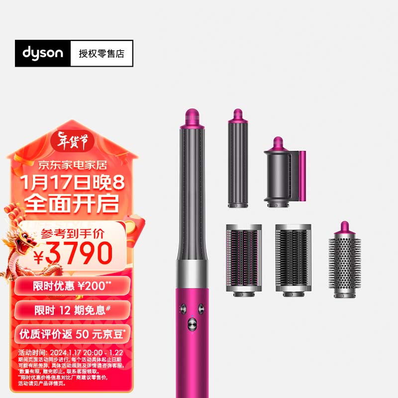 戴森(DYSON)多功能美发棒 Airwrap Complete空气卷发棒 多功能合一 旗舰套装 紫红镍色 长发版价格:3990.00元!