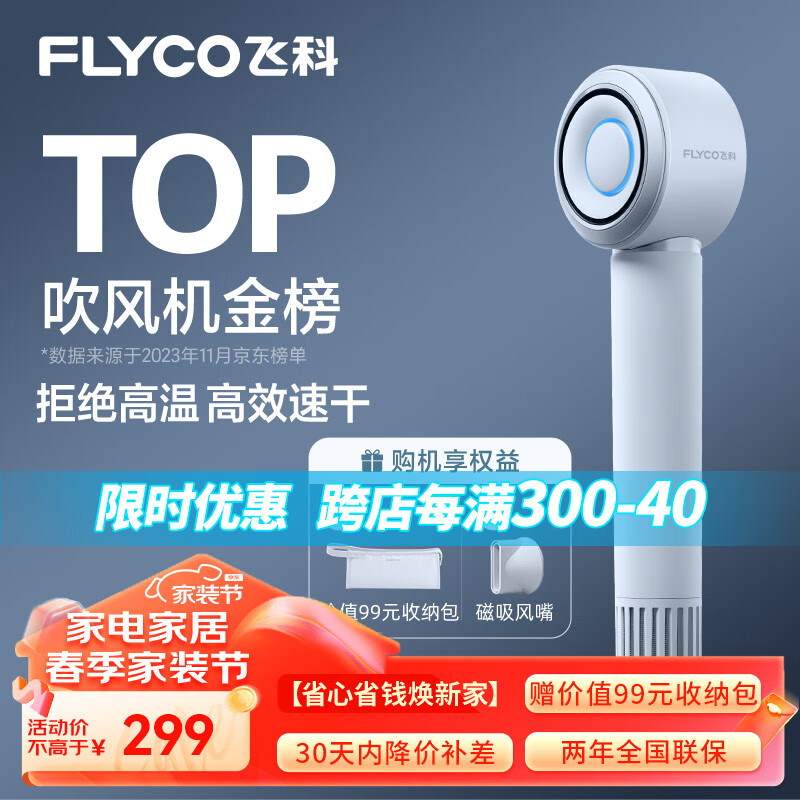 飞科(FLYCO)高速电吹风机节日礼物送女生低噪家用宿舍便携速干负离子护发大功率银河星环吹风筒FH6371星空灰价格:339.00元!