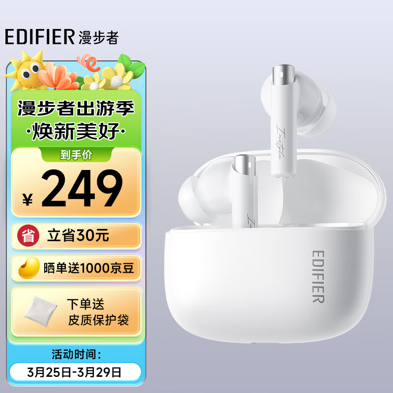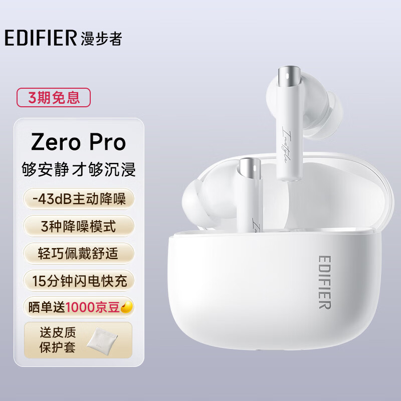 漫步者(EDIFIER)Zero Pro 真无线主动降噪蓝牙耳机 入耳式耳机 蓝牙5.3 无线耳机 适用苹果华为小米OPPO 雾白价格:249.00元!