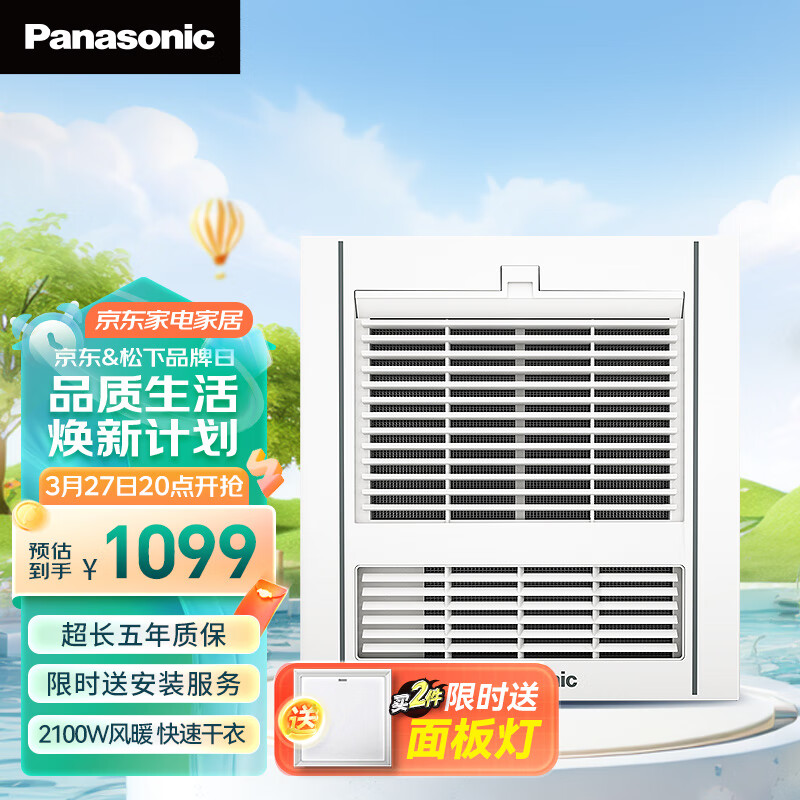 松下(Panasonic)浴霸FV-RB20Y1 浴霸风暖 排气扇浴室暖风机通用吊顶式卫生间换气价格:1499.00元!
