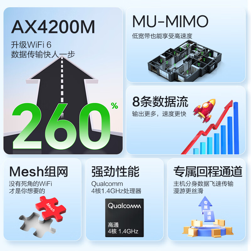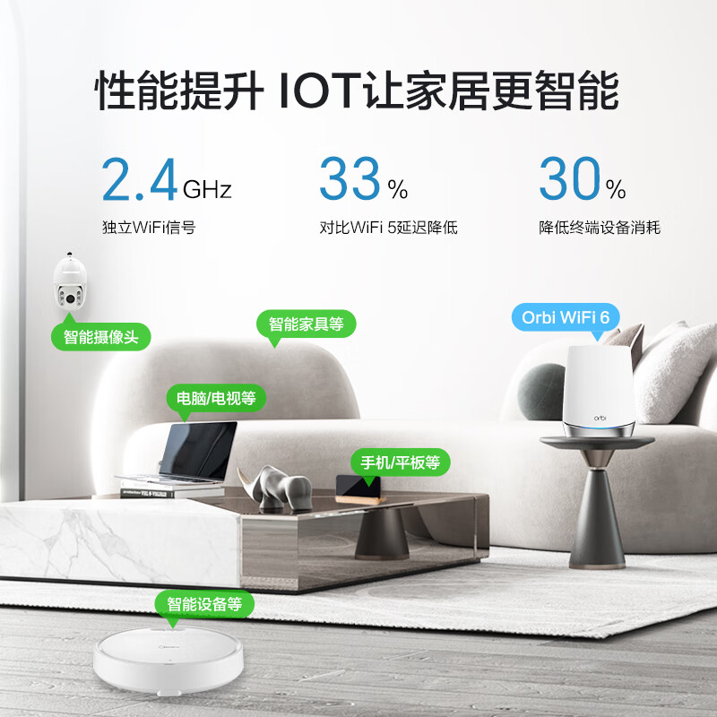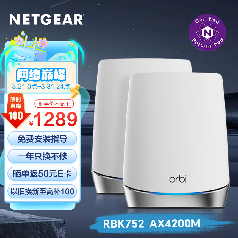网件(NETGEAR)RBK752 wifi6无线路由器千兆/Mesh专用频段/四核三频/AX8400组合速率/认证翻新/Orbi价格:1389.00元!
