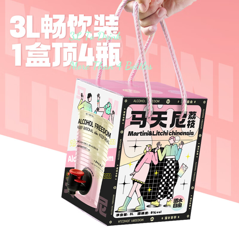 小花样8度荔枝马天尼箱装3L鸡尾果酒大容量男女微醺露营聚会晚安价格:115.00元!