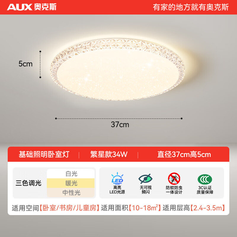 奥克斯(AUX)吸顶灯led卧室灯客厅灯餐厅灯薄款北欧现代简约ZH-38WS-A价格:148.00元!