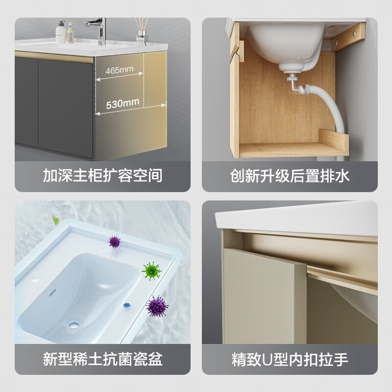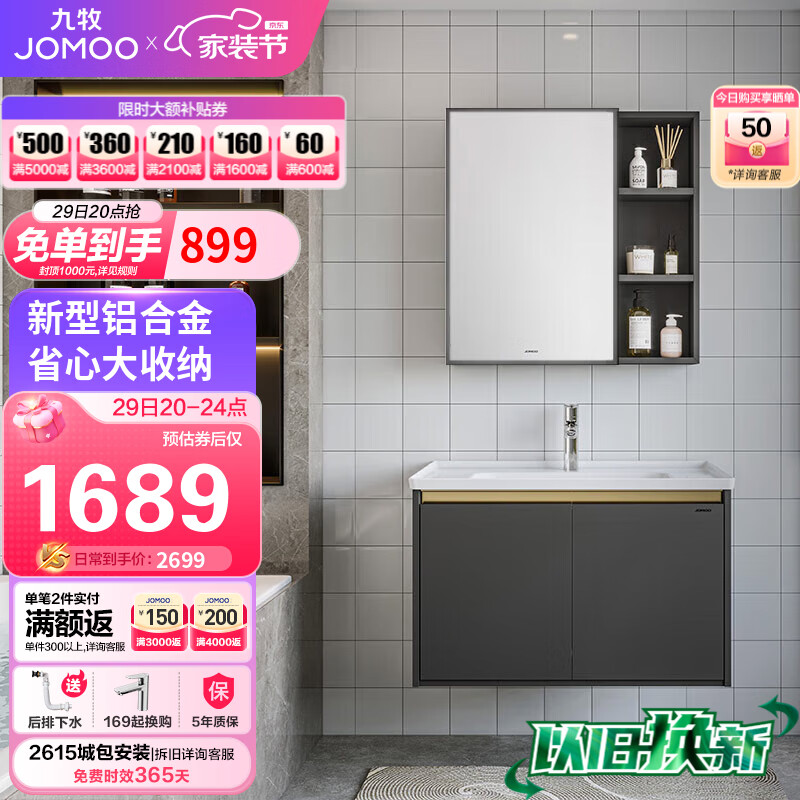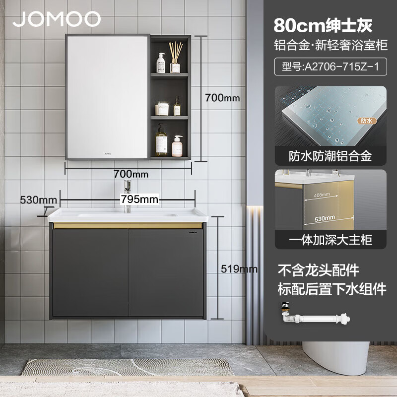 九牧(JOMOO)浴室柜 陶瓷一体盆铝合金悬挂抗菌组合柜绅士灰80cm A2706-715Z-1价格:2179.00元!