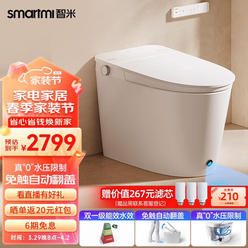 智米(SMARTMI)智能马桶自动翻盖带水箱不限水压智能坐便器2S ZNMTY06ZM-300坑距价格:4999.00元!