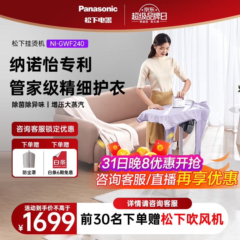 松下(Panasonic)挂烫机 家用 电熨斗 手持挂烫机 纳米水离子技术 增压蒸汽 NI-GWF240价格:1699.00元!