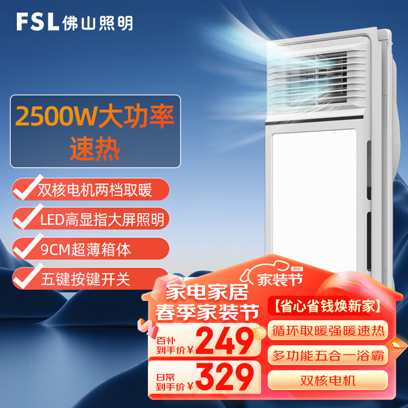 FSL佛山照明浴霸风暖浴霸暖风机浴室取暖器集成吊顶浴霸五合一M2价格:249.00元!