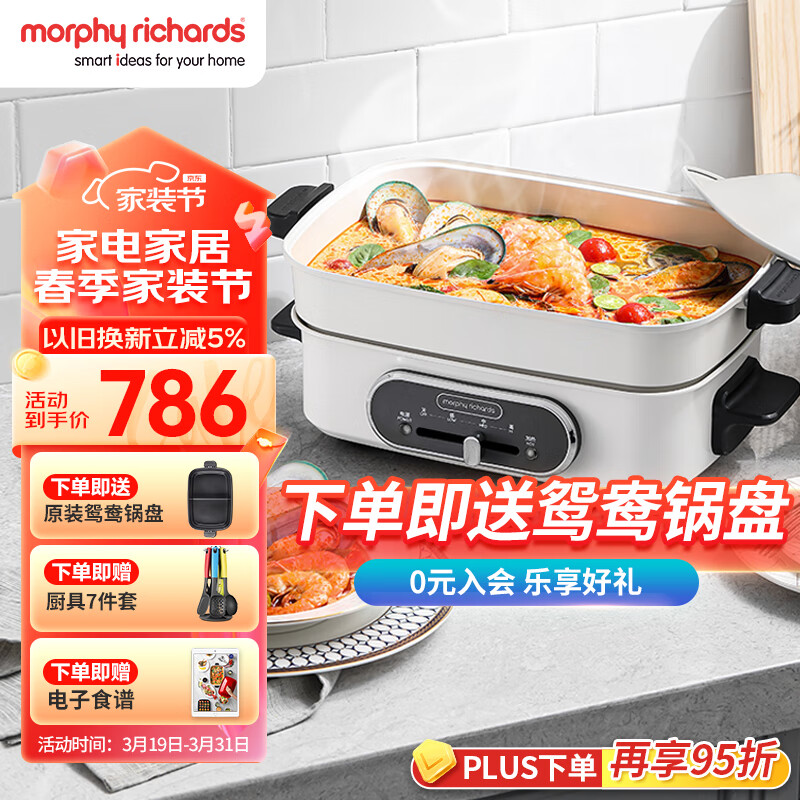 摩飞电器(Morphyrichards)多功能锅 家用多用途锅 电火锅电煮锅电蒸锅电热锅 2.5升 火锅锅 MR9088 富士白价格:786.00元!